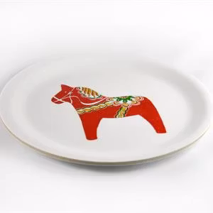 Glasunderlägg kant, Dala horse, vit/rött tryck