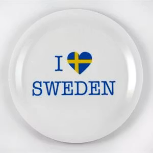 Glasunderlägg kant, I love Sweden,vit/blå-gul text