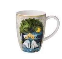 Två förälskade katter sitter i månskenet. De spinner tyst, kryper tätt intill varandra och njuter av nattens tystnad. Konstnärens kopp är tillverkad av behagligt ljust fint benporslin och dekorerad med metallicfärg.